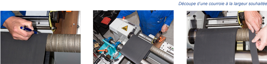 - À notre machine de découpe, nous pouvons instantanément vous fournir la courroie à la longueur et largeur souhaitées. |