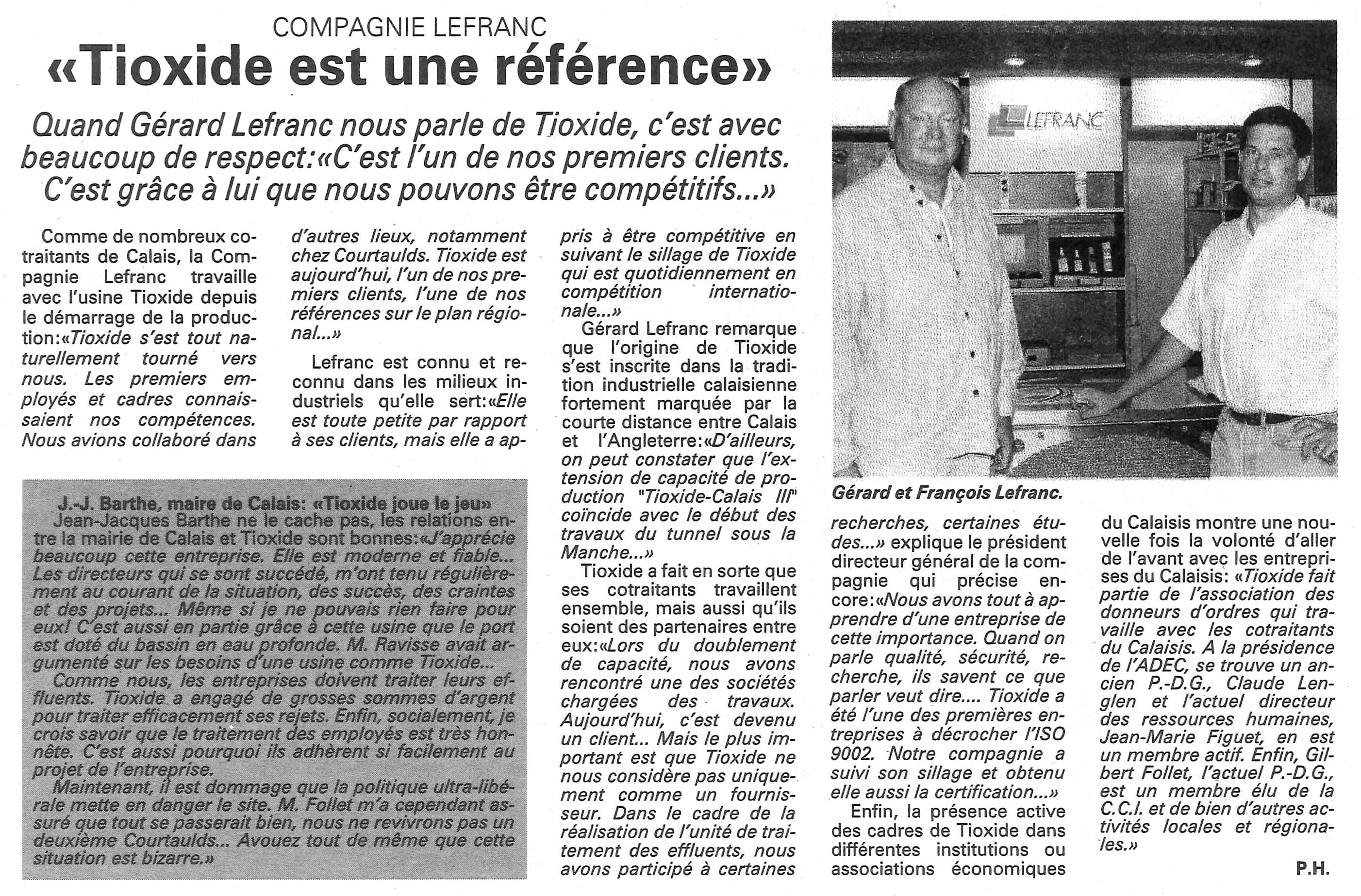 LEFRANC SA - 7 rue Charost BP7 - 62101 Calais Cedex - France - compagnie@lefranc-sa.fr - http://www.lefranc-sa.fr - CGV